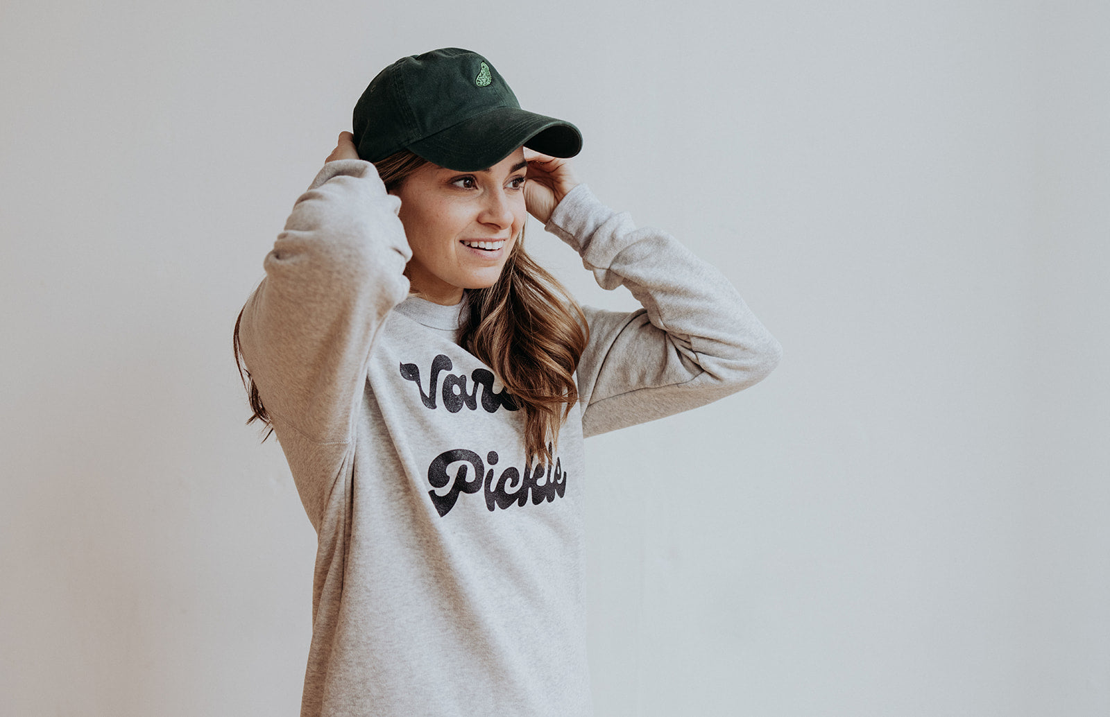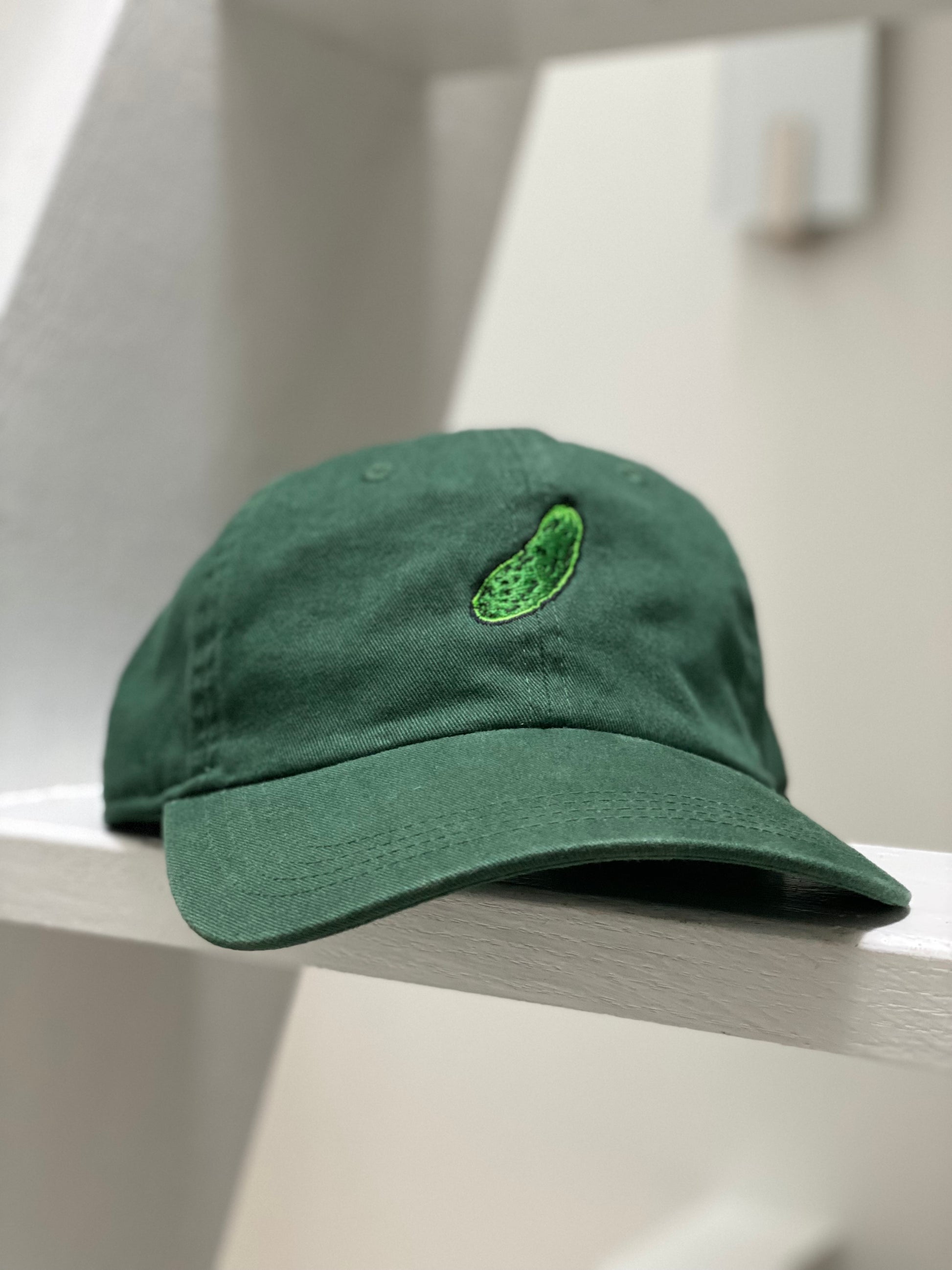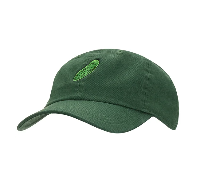 Vintage twill cap featuring The Big Dill pickle patch on the front and “Varsity” on the back.