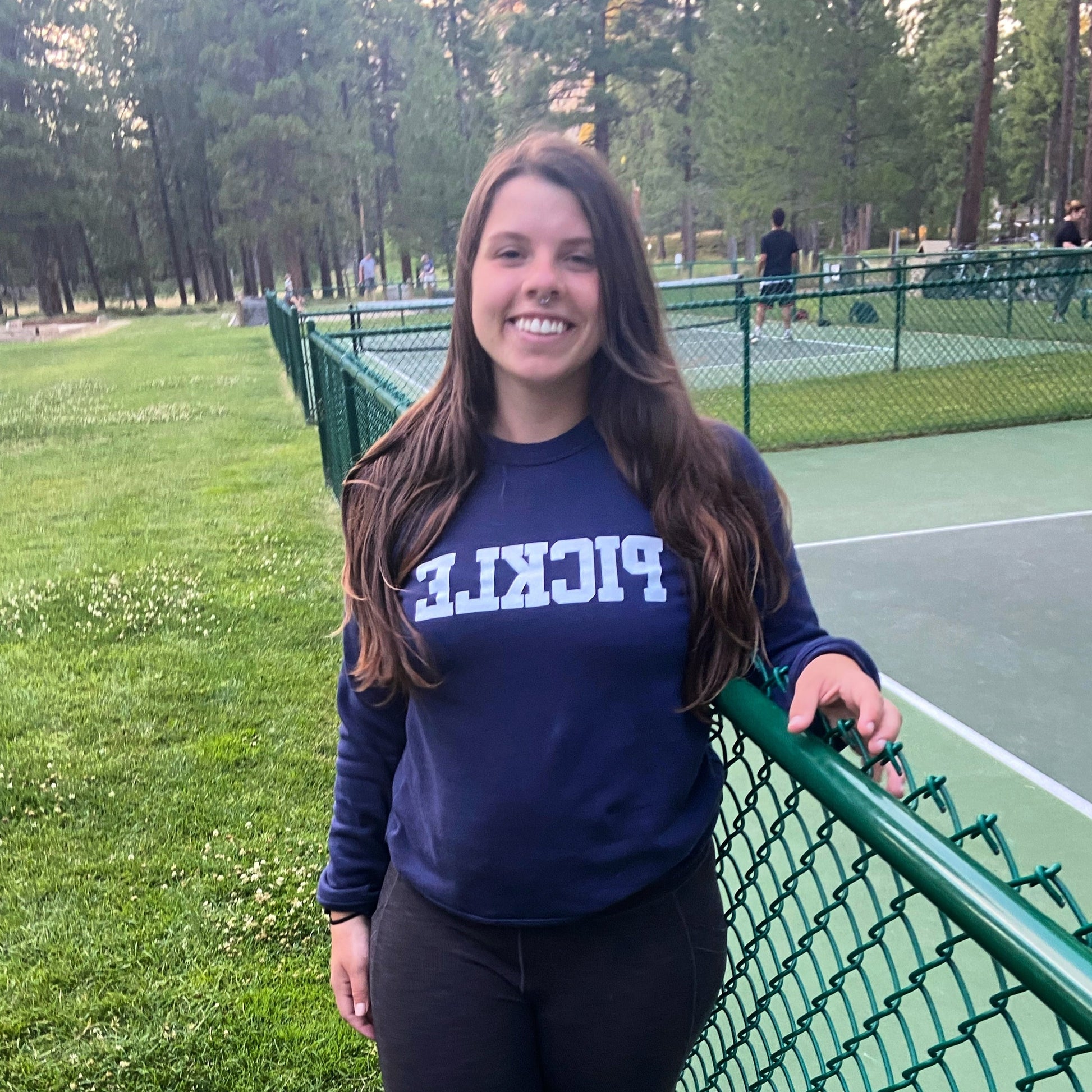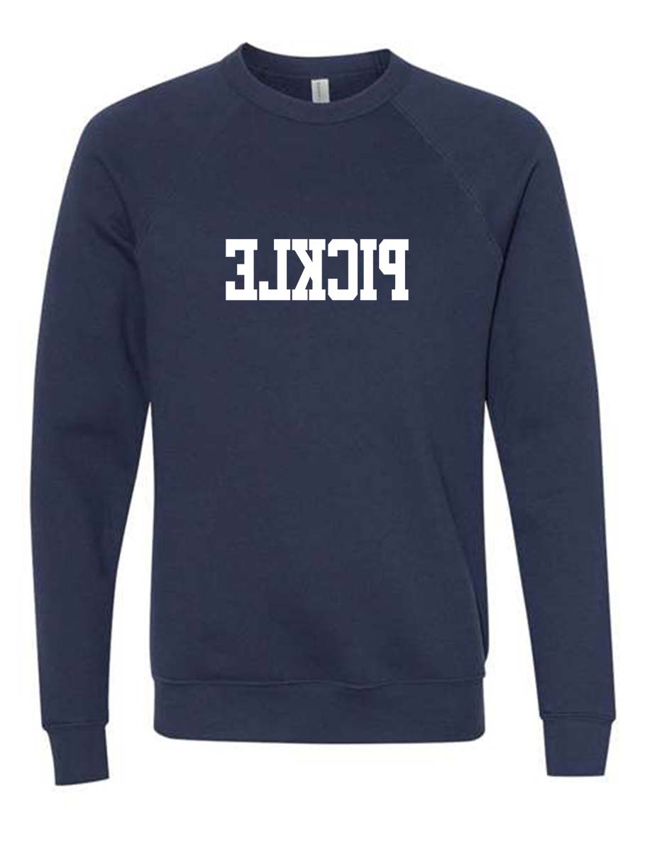 A cozy, soft sweatshirt with our backwards pickle design. This navy blue crewneck will look great on you as you work on your backhand or drink with your opponents post-victory.